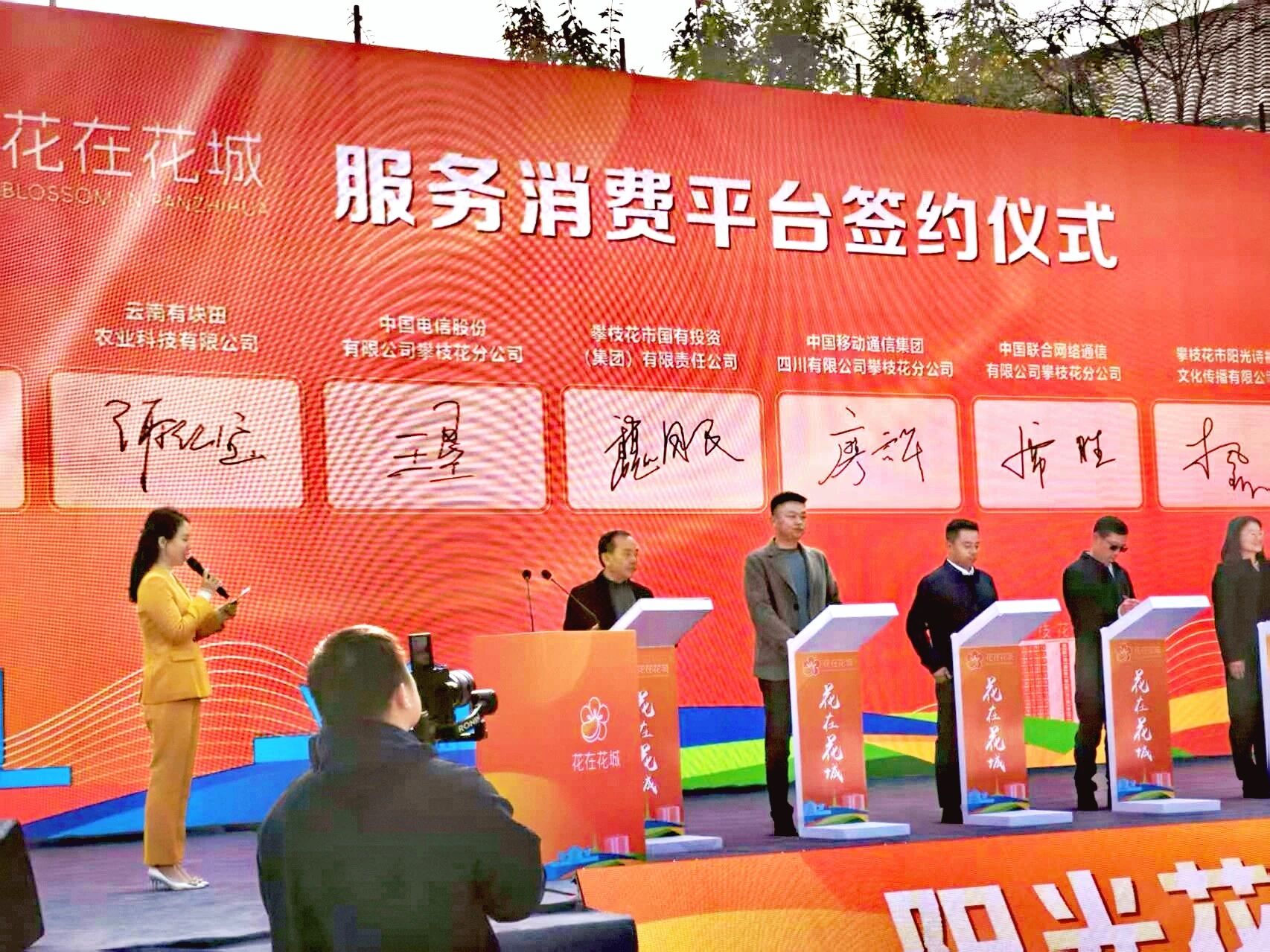 12月19日上午,有块田联合攀枝花市打造的“花在花城”服务消费平台发布仪式在攀枝花市金海广场盛大举行,攀枝花市政府、商务局、文广旅局、各县(区)人民政府、国家钒钛高新区管委会等各级领导及数百名群众现场见证发布仪式。公司董事长谢红宝出席发布活动并进行合作签约。